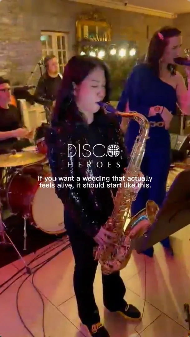 We firmly believe in the power of live music and refuse to employ backing tracks or miming, unlike a lot of wedding bands! Disco Heroes always perform 100% live.